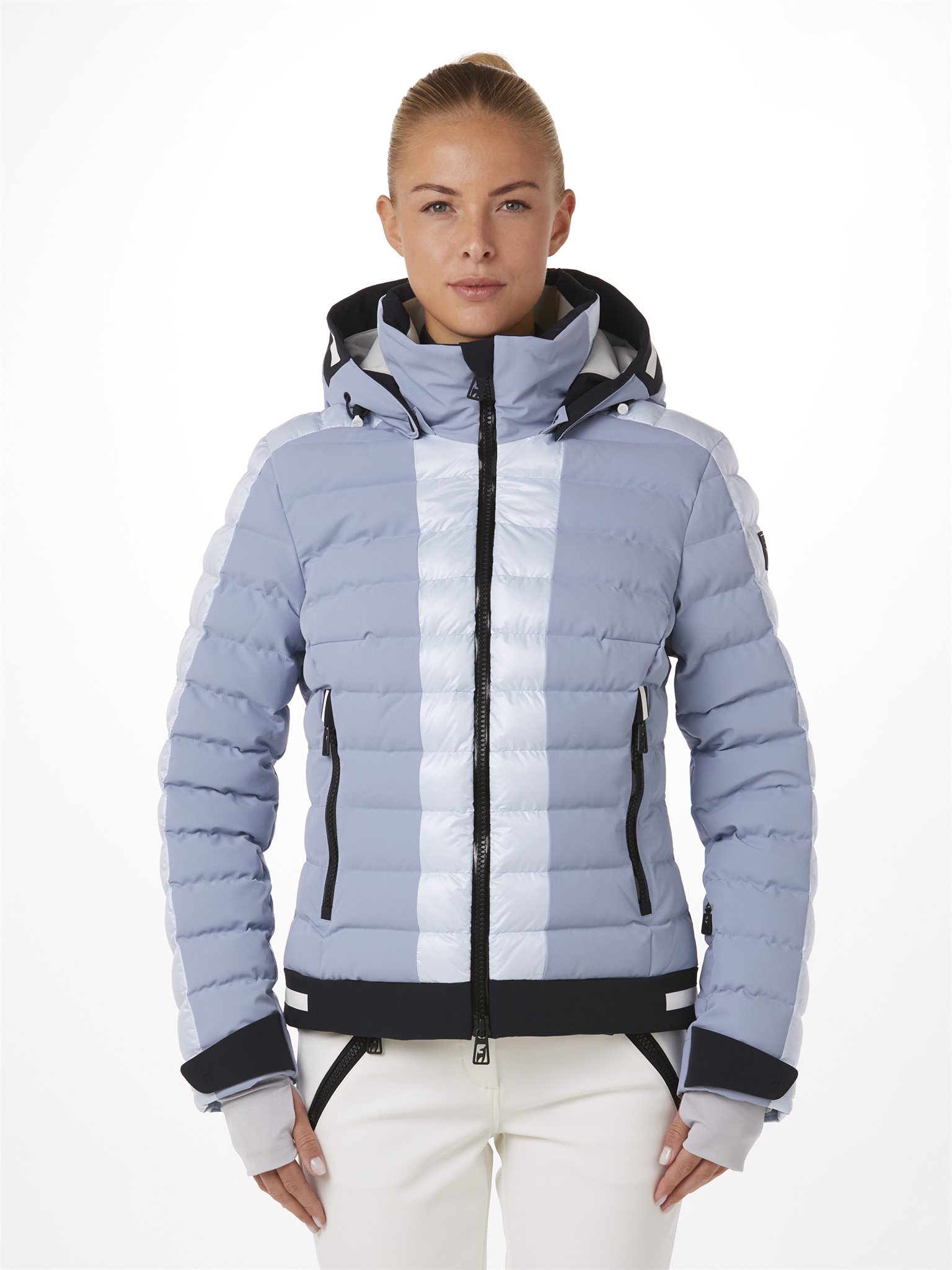 De NORMA dames skijack, handmatig gevuld met warmtebehoudende SORONA® Fiberballs, combineert een sportieve look met een vrouwelijke silhouet. Hoge functionaliteit in alle weersomstandigheden wordt gegarandeerd met Japanse Premium 4-way Stretch en Shiny Nylon Ripstop Cire-finish met een membraan, Z-Liner, en waterafstotende afwerking. Elk designelement is perfect op elkaar afgestemd voor uitzonderlijk comfort. Met een superzachte fleece voering aan de binnenkant van de kraag voor een luxe gevoel en het Toni Sailer-logo op de achterkant van de zoom.