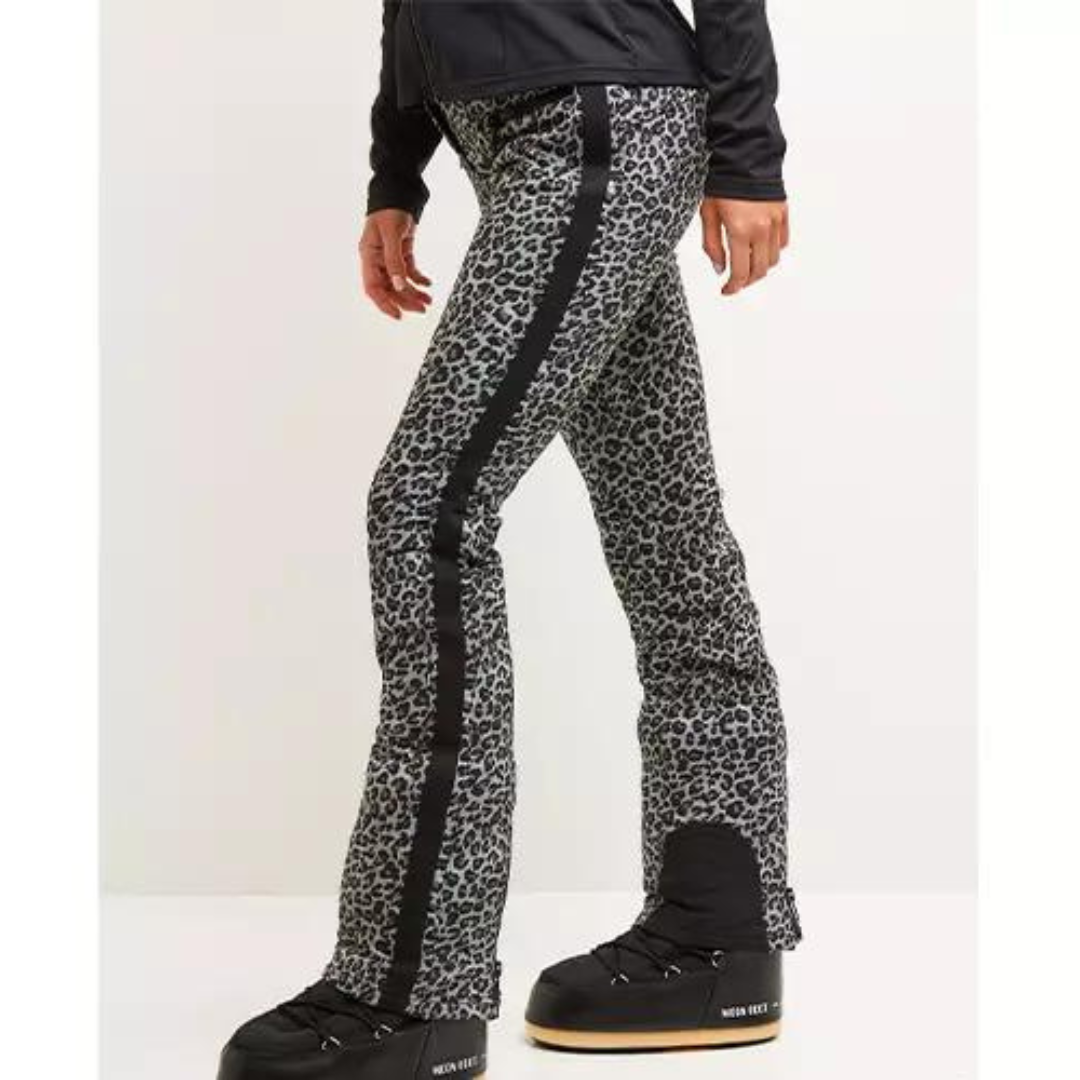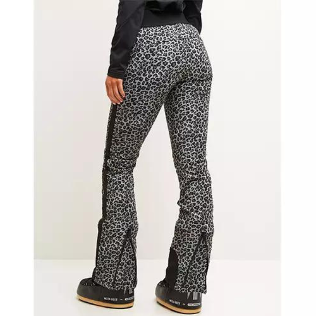 Elastische sneeuwsloten en ritssluiting aan de onderkant om veilig over de laars te zitten. Dit helpt de sneeuw buiten te houden. Stijlvolle, vrouwelijke skibroek, zowel voor op de piste als voor de after-skin. Koop je de broek bij ons, dan heb je altijd gratis verzending en gratis retourneren. Dan kun je het thuis in alle rust uitproberen.