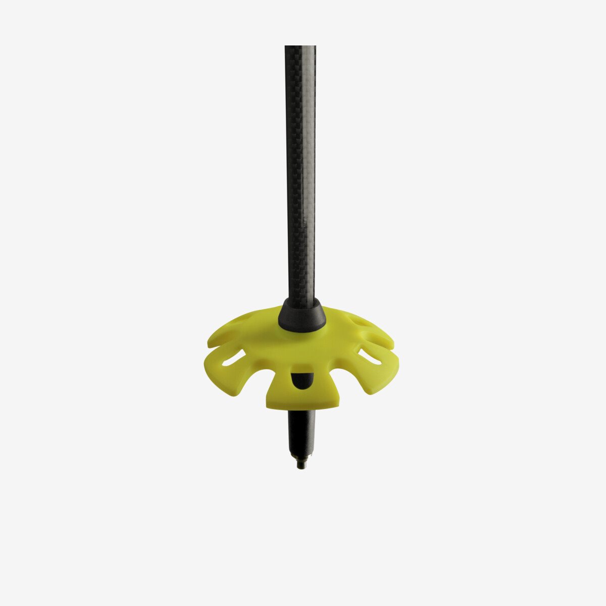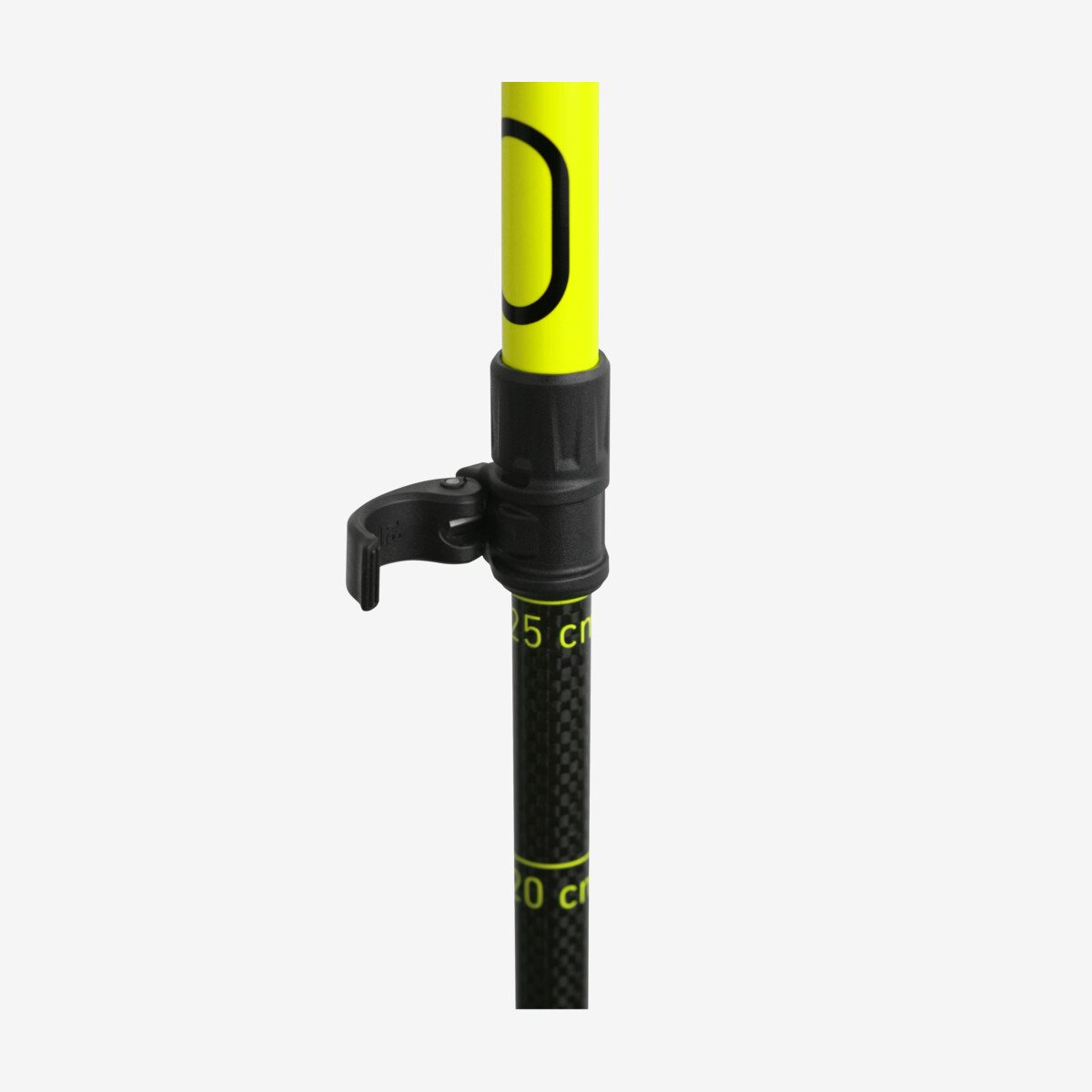 Hoogwaardige skistok met een onderste buis van carbon en een traploos verstelbaar mechanisme voor alle eisen.