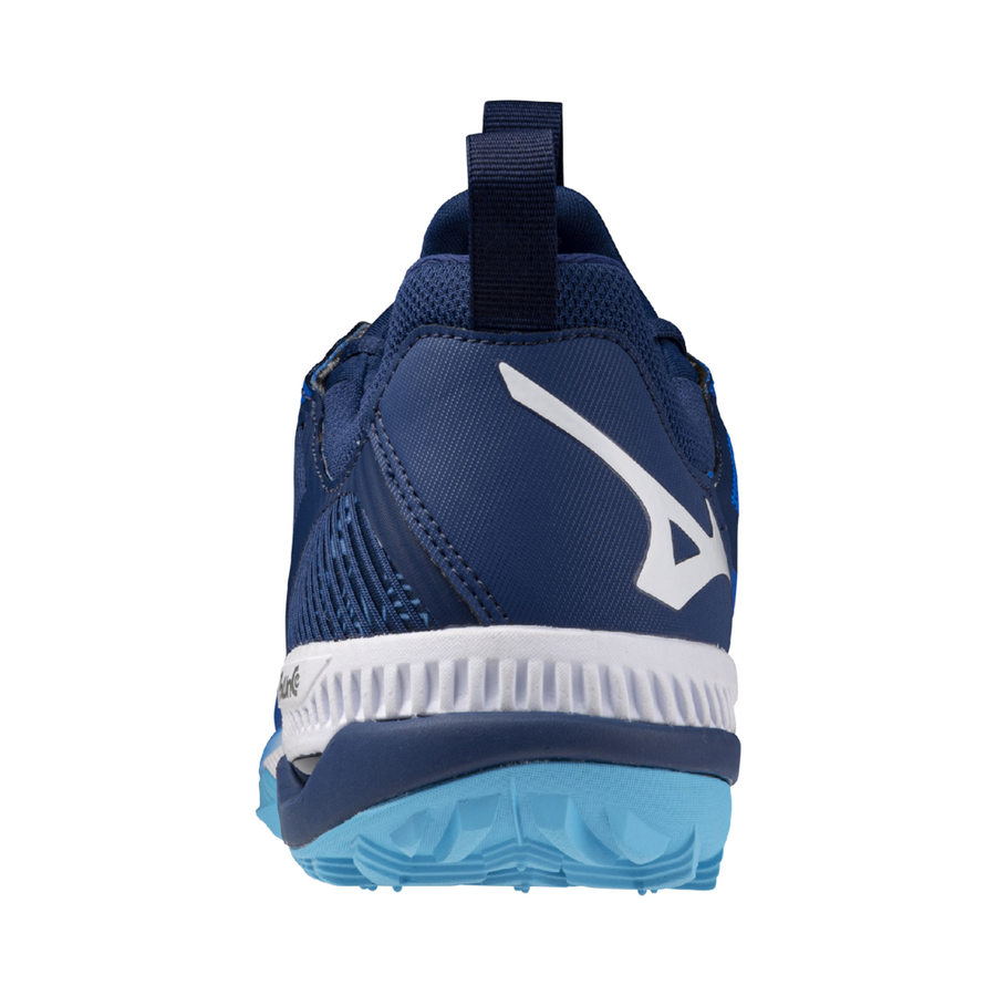 Mizuno logo in het blauw op een witte achtergrond