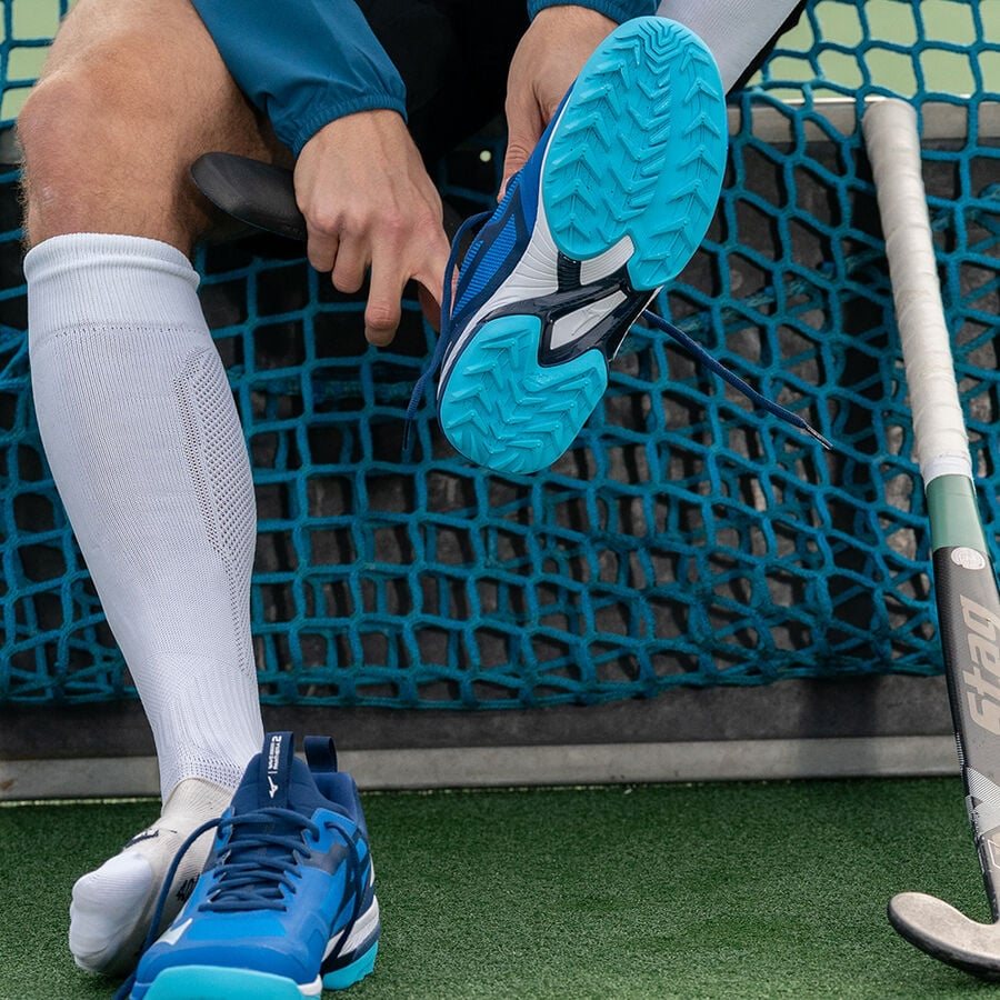 Fanatieke veldhockeyspelers die stabiliteit nodig hebben, kunnen rekenen op deze lichte, maar veilige schoen. Het heeft een bovenwerk in bootie-stijl dat de hele voet omsluit met een zachte pasvorm. Hij heeft ook een cup binnenzool voor een nog betere pasvorm, plus een zool die is ontworpen voor ongelofelijke grip. ·Bovenwerk in bootie-stijl voor een pasvorm die de hele voet omsluit ·Zool ontworpen voor grip ·Cup binnenzool voor verbeterde pasvorm in de schoen